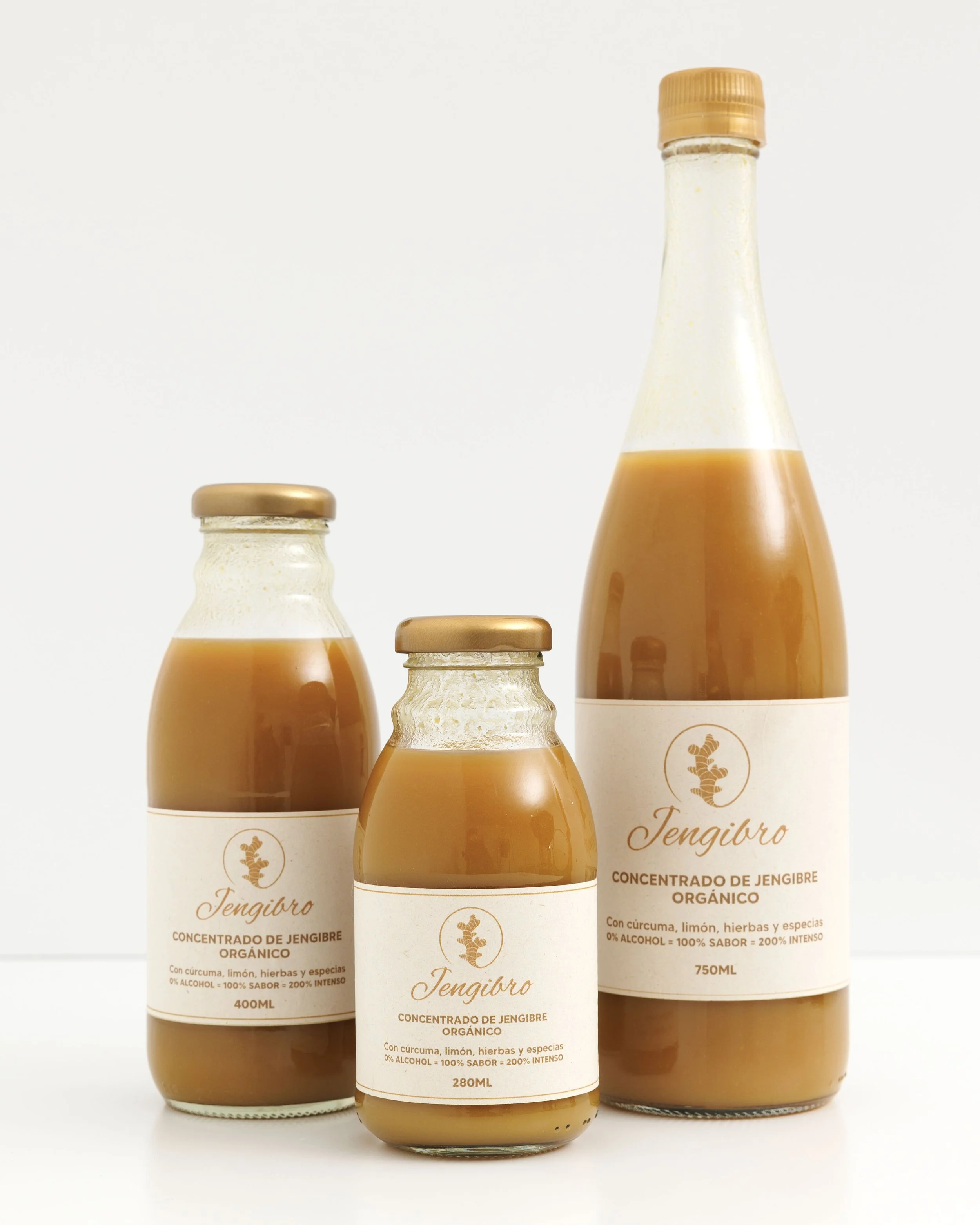 Jengibro es la alternativa orgánica a cualquier bebida alcohólica. Envasamos este concentrado con el mejor jengibre, cúrcuma, limón y especias orgánicos. Bebelo puro o mézclalo con agua caliente o fría para desbloquear infinitas posibilidades de deliciosos cócteles sin o con alcohol, infusiones naturales y creaciones culinarias elevadas.